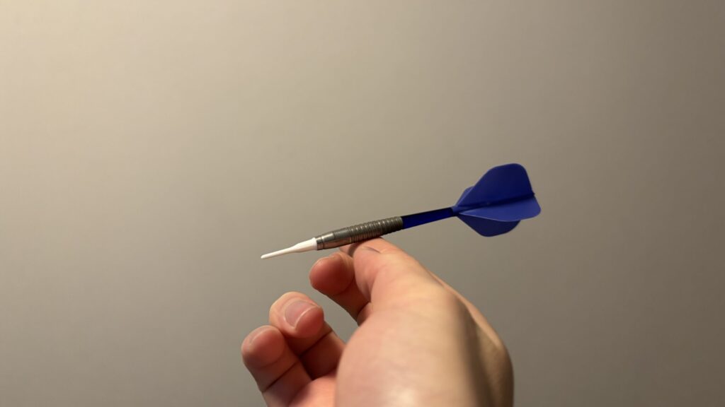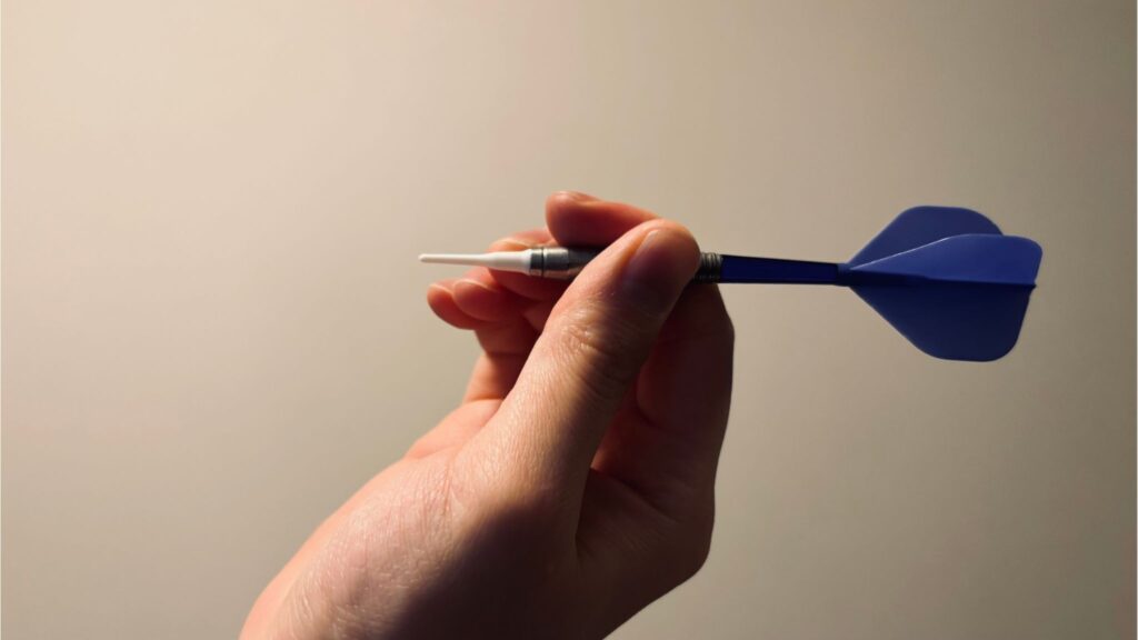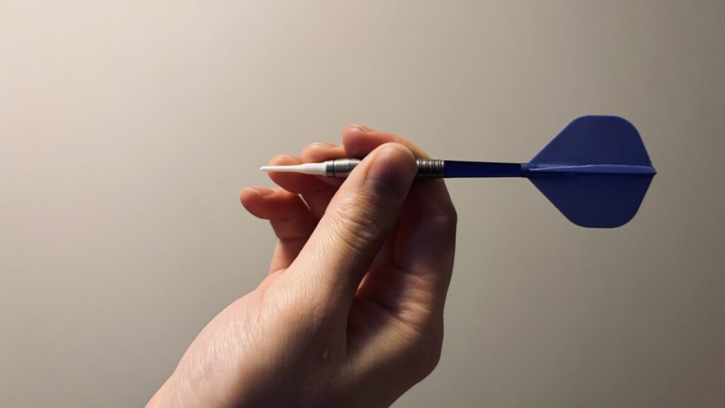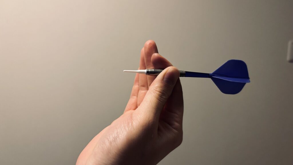 • 親指と人差し指でダーツを軽くしっかり挟む(鉛筆や箸を持つようなイメージ)