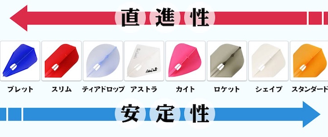 ・ダーツが短いと推進力があがり、安定性が落ちる